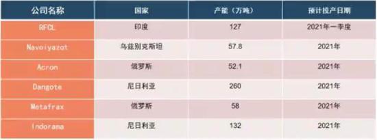 然而,近几年来,国外尿素新产能投放力度较大。卓创数据显示,2021海外预计新增产能686.9万吨。其中,印度一套127装置预计在一季度有投产,在未来的2021-2023年期间,印度将陆续有新增产能投产,逐步实现自给自足。据悉,尼日利亚Dangote的一套130万吨尿素装置于3月24号正式开产,预计4月就会开始出口。另外,Indorama的Port Harcourt 2号线,预计会在今年下半年投产,年产能130万吨。由于海外尿素以天然气生产为主,而我国尿素以煤炭为主要原料,因此在价格上缺乏竞争优势,一旦海外新增产能如期投产,对我国尿素出口将产生不利影响。
