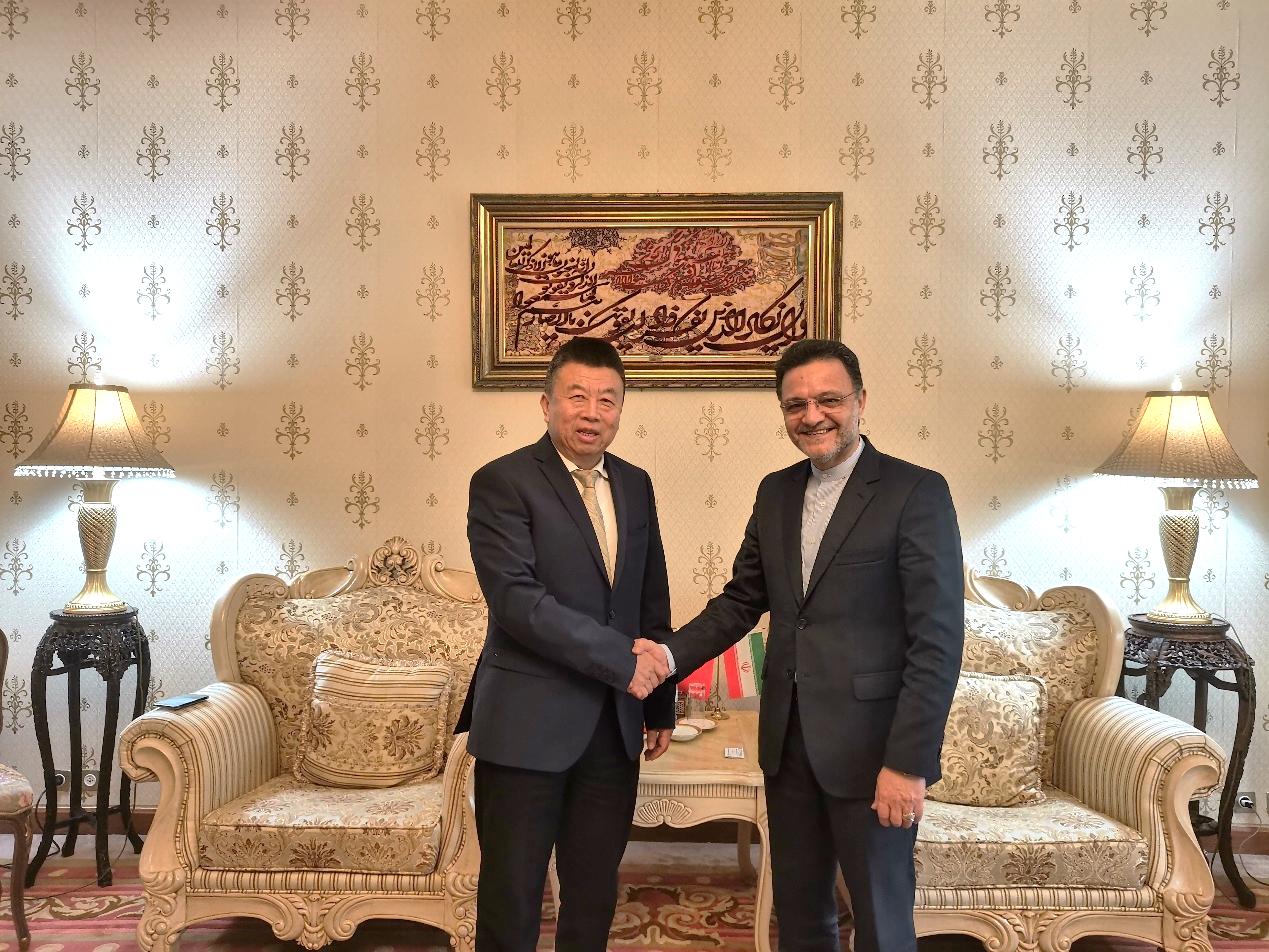 On March 14th, President Mr. He Zhenwei visited the Embassy of Iran in China and had a meeting with Ambassador Mr. Mohsen Bakhtiar on strengthening cooperation on the 14th China Overseas Investment Fair to promote bilateral economic and trade development.