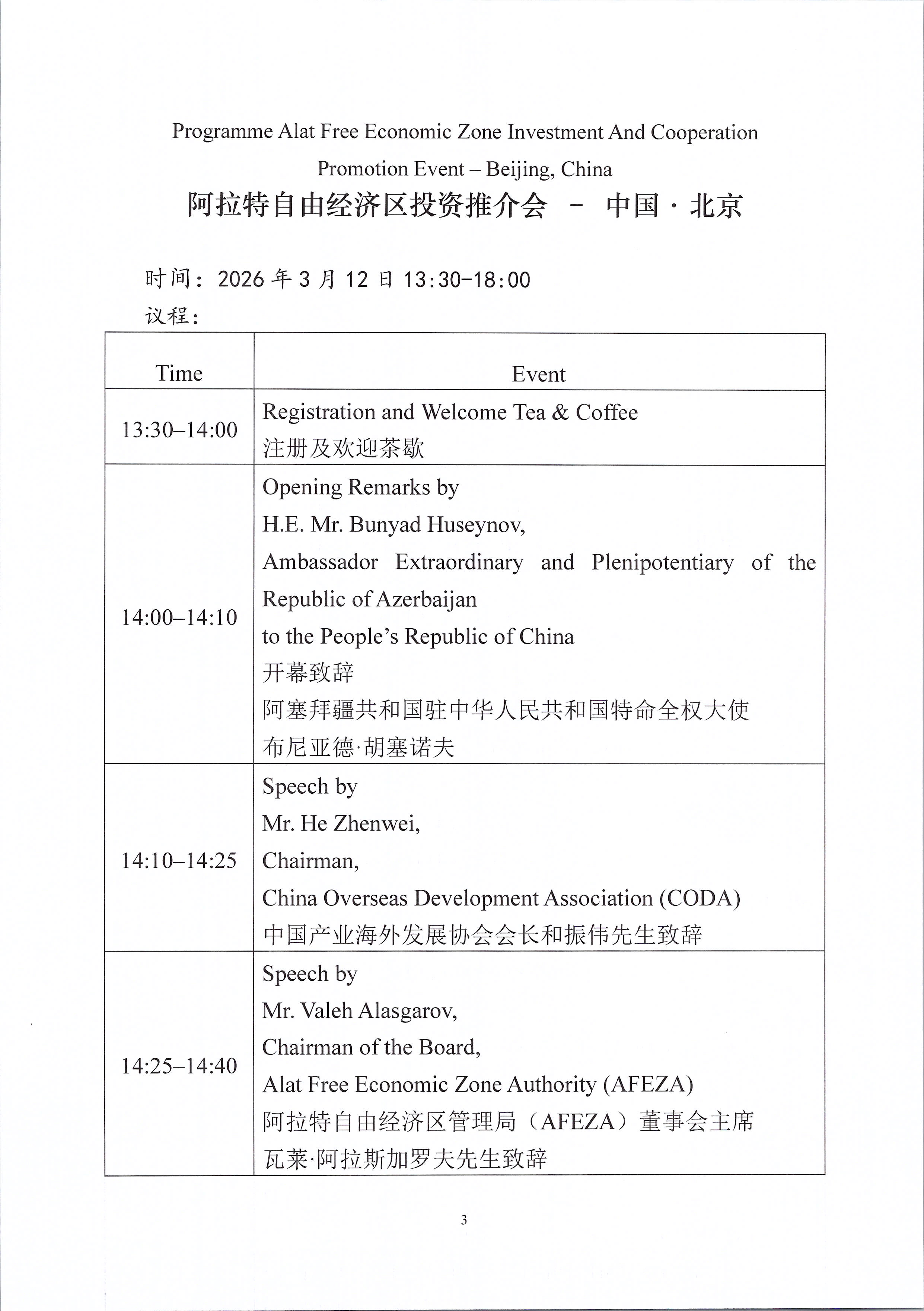 关于邀请出席阿塞拜疆“阿拉特自由经济区投资推介会”的函