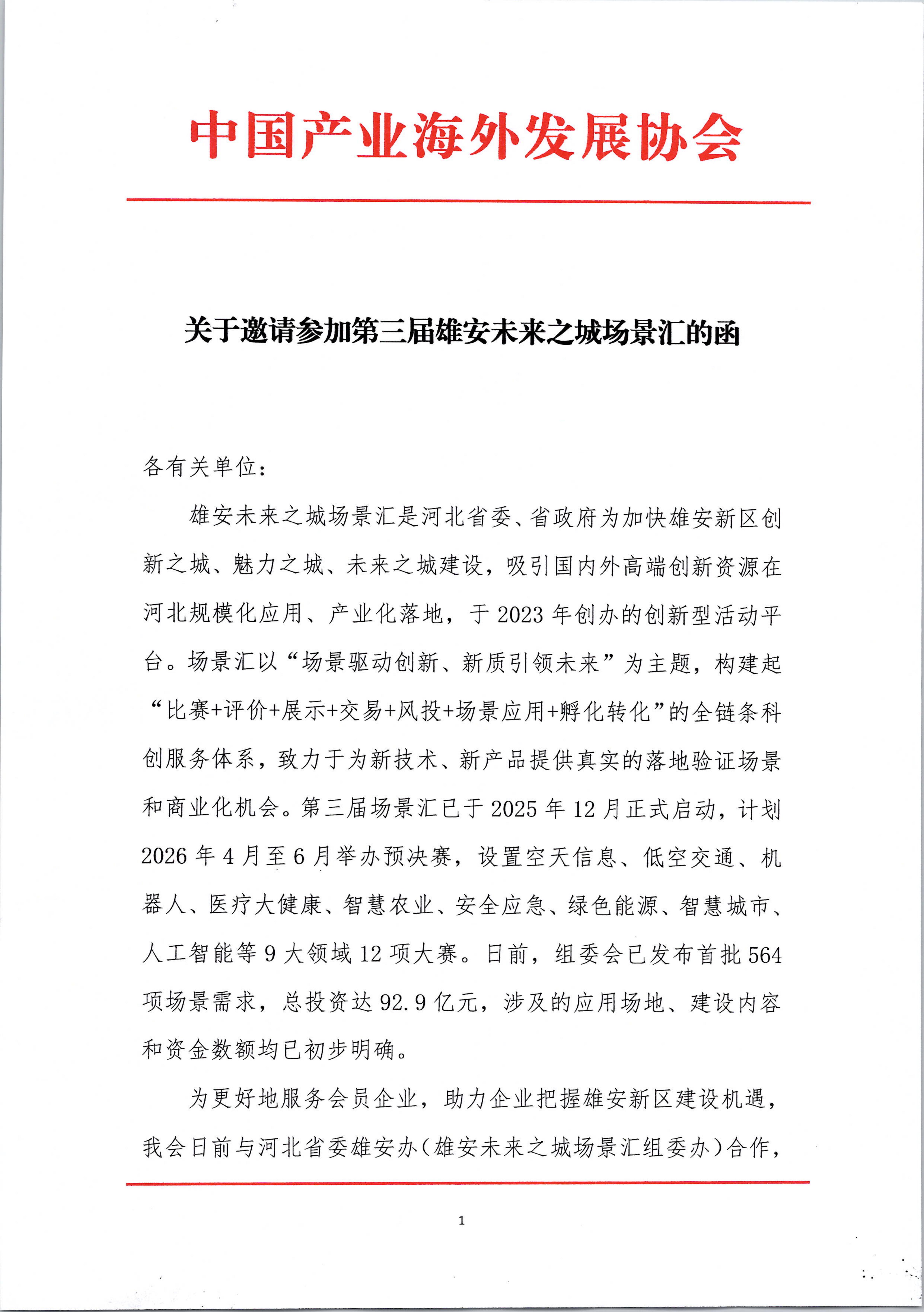 关于邀请参加第三届雄安未来之城场景汇的函