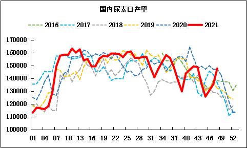 从日产的表现来看,截止11月底国内尿素日均产量约14.76万吨,亦出现大幅走高。后续随着气头装置停车检修的陆续兑现,预估日产降幅约1.5万吨左右,有助于缓解现阶段产业高库存压力。