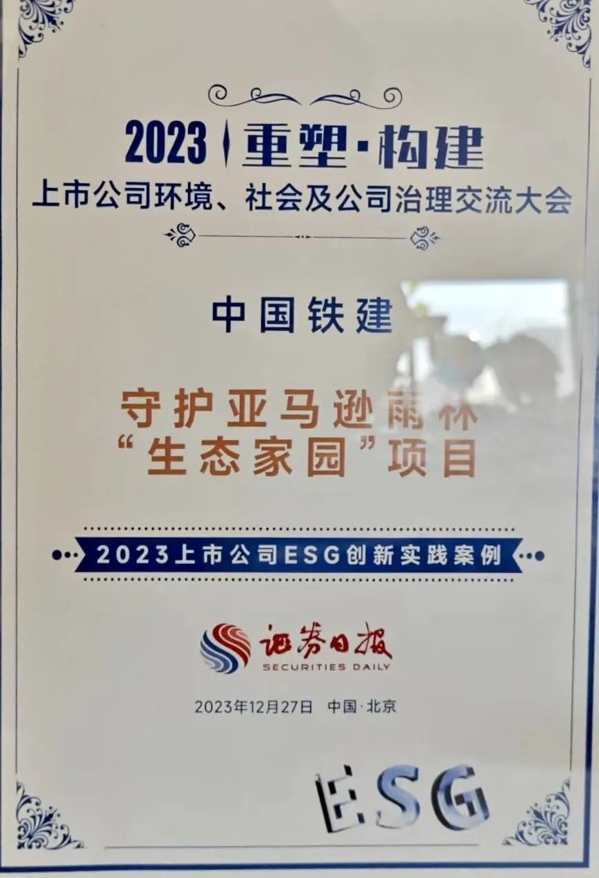 近日,证券日报主办的“2023上市公司环境、社会及公司治理交流大会”在京举办。中国铁建玻利维亚鲁雷纳瓦克至里韦拉尔塔公路项目守护亚马逊雨林“生态家园”案例,荣获“2023上市公司ESG创新实践案例”。