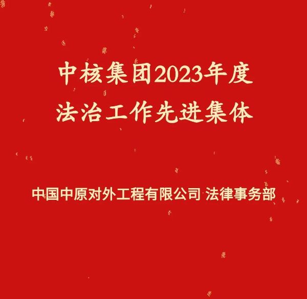 近日,集团公司发布2023年度法治工作先进集体和个人的评选结果,对全集团范围内的5个先进集体和10名先进个人进行表彰。中国中原法律事务部被评为中核集团2023年度法治工作先进集体。