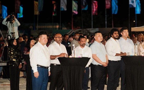 中国驻马尔代夫使馆经商参赞张旭、中国电工副总经理金辉、马尔代夫国土安全和技术部长阿里·伊赫桑、阿杜市市长阿里·尼扎尔、业主公司总经理阿麦德·纳奇姆,其他政府机构、组织及企业代表、当地民众等近1000人到场,共同见证项目里程碑时刻。